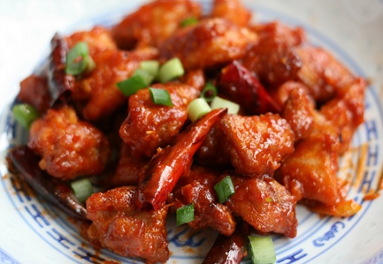 Many people think that chicken is a healthier option than beef and pork. Unfortunately, that is not always true. This dish is coated in bread crumbs, deep fried and covered in heavy sauce; one serving contains almost 1300 calories.